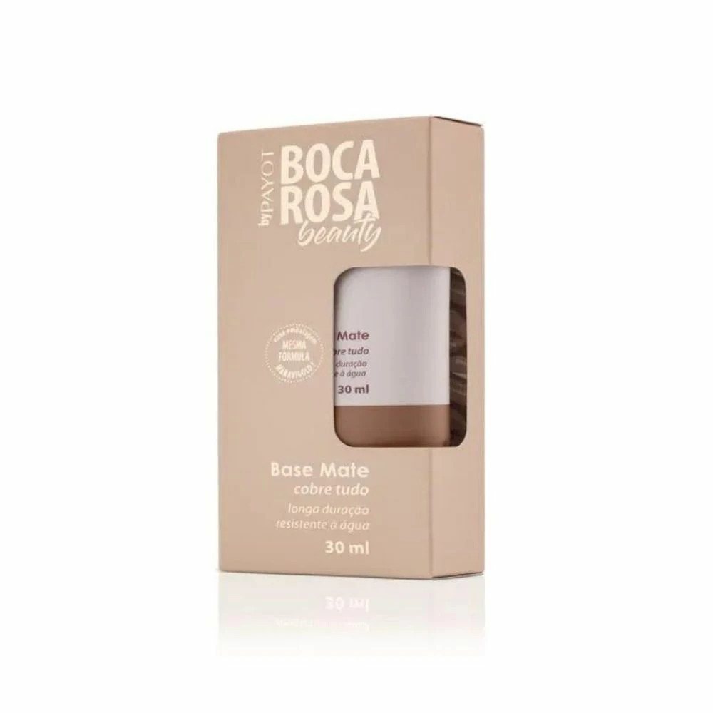 Base líquida com acabamento matte. Boca Rosa Beauty by Payot é hipoalergênica, oferece alta cobertura e permite construir camadas. A Base Líquida Boca Rosa Beauty by Payot cobre toda a pele e conta com uma textura fina, de fácil aplicação, que permite a construção de varias camadas. Sua textura fina não realça imperfeições da pele e ainda é resistente a água.