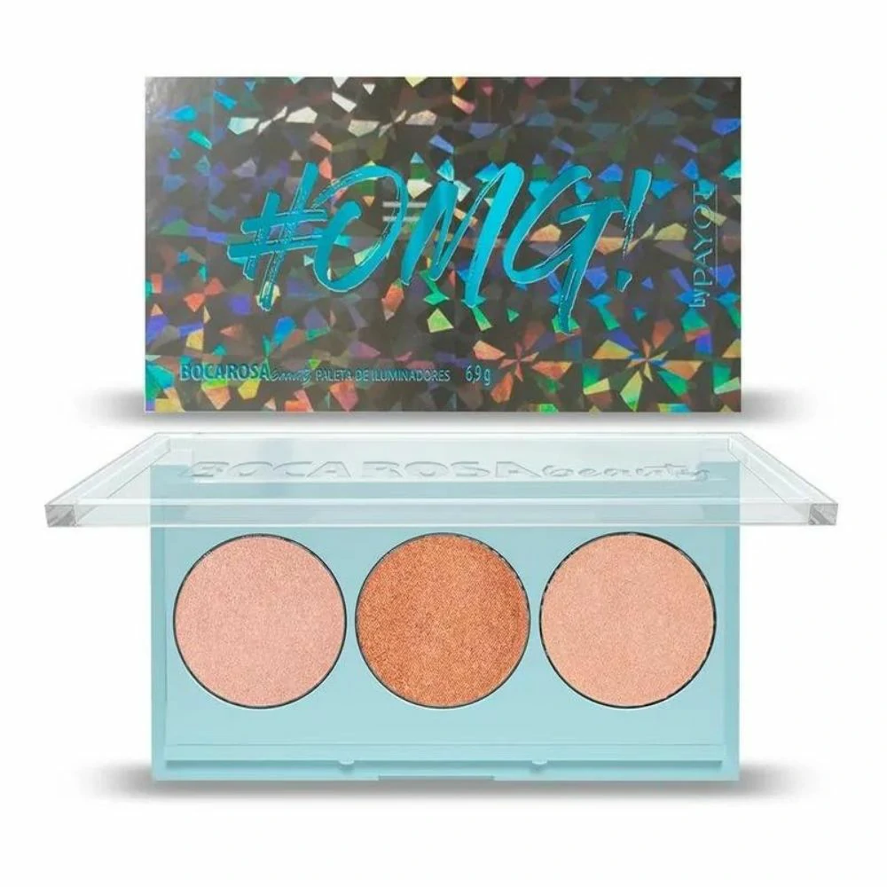 Paleta com 3 iluminadores Boca Rosa Beauty by Payot OMG realça áreas estratégicas do rosto enquanto deixa um glow impecável no visual. Com cores variadas, combina com diversos tons de pele. A Paleta de Iluminador Boca Rosa Beauty by Payot OMG possui micropartículas de brilho que se aderem bem à pele e oferecem alta durabilidade. Pode ser usado em pontos específicos, no rosto todo antes de aplicar a base ou em regiões do corpo. Seu visual ganha dimensão e destaque com um acabamento luminoso.