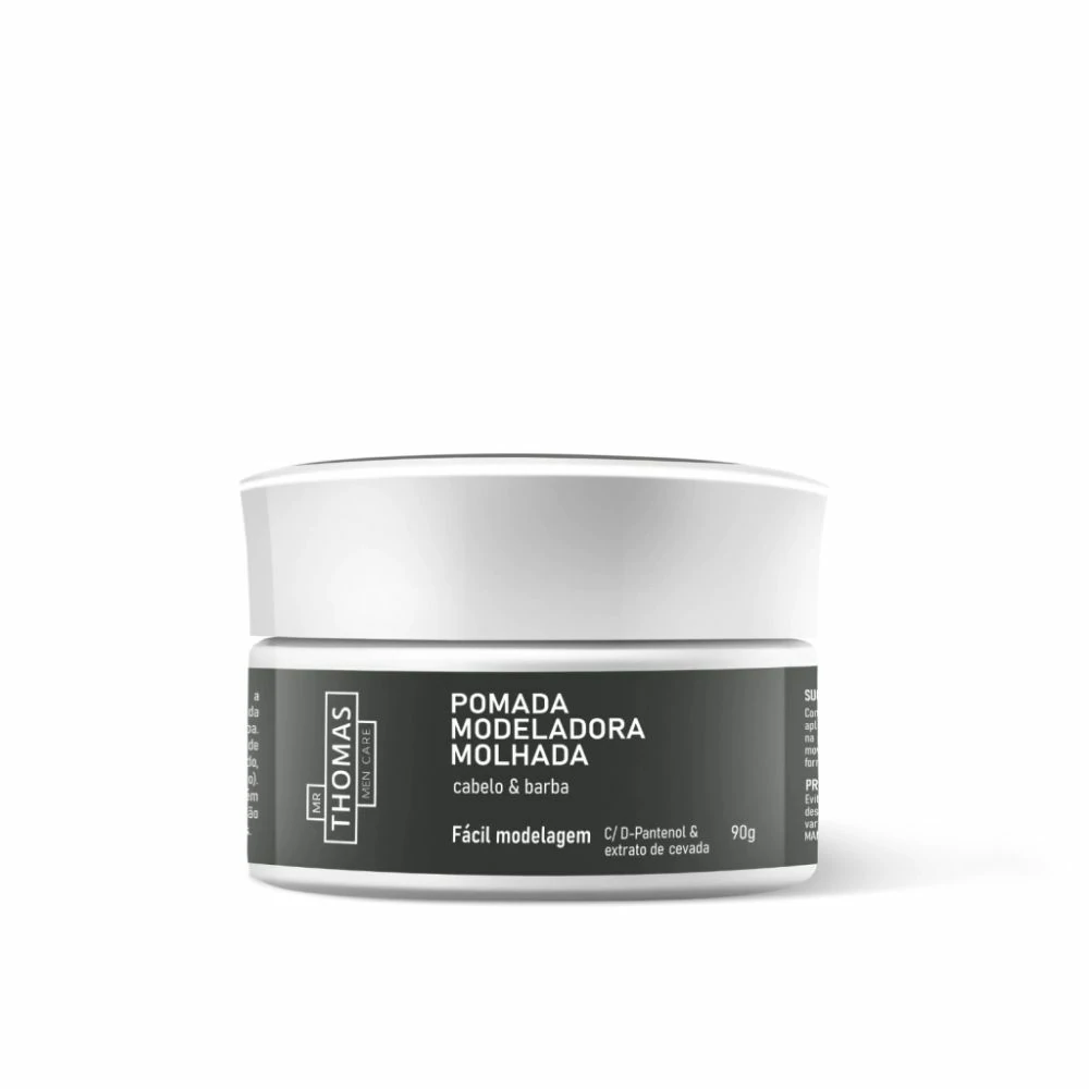 Desenvolvida para homens modernos, a pomada modeladora Mr. Thomas foi projetada para finalizar com estilo o cabelo e a barba. Com efeito molhado, modela o cabelo de forma natural, mantendo-o alinhado, hidratado e com brilho.